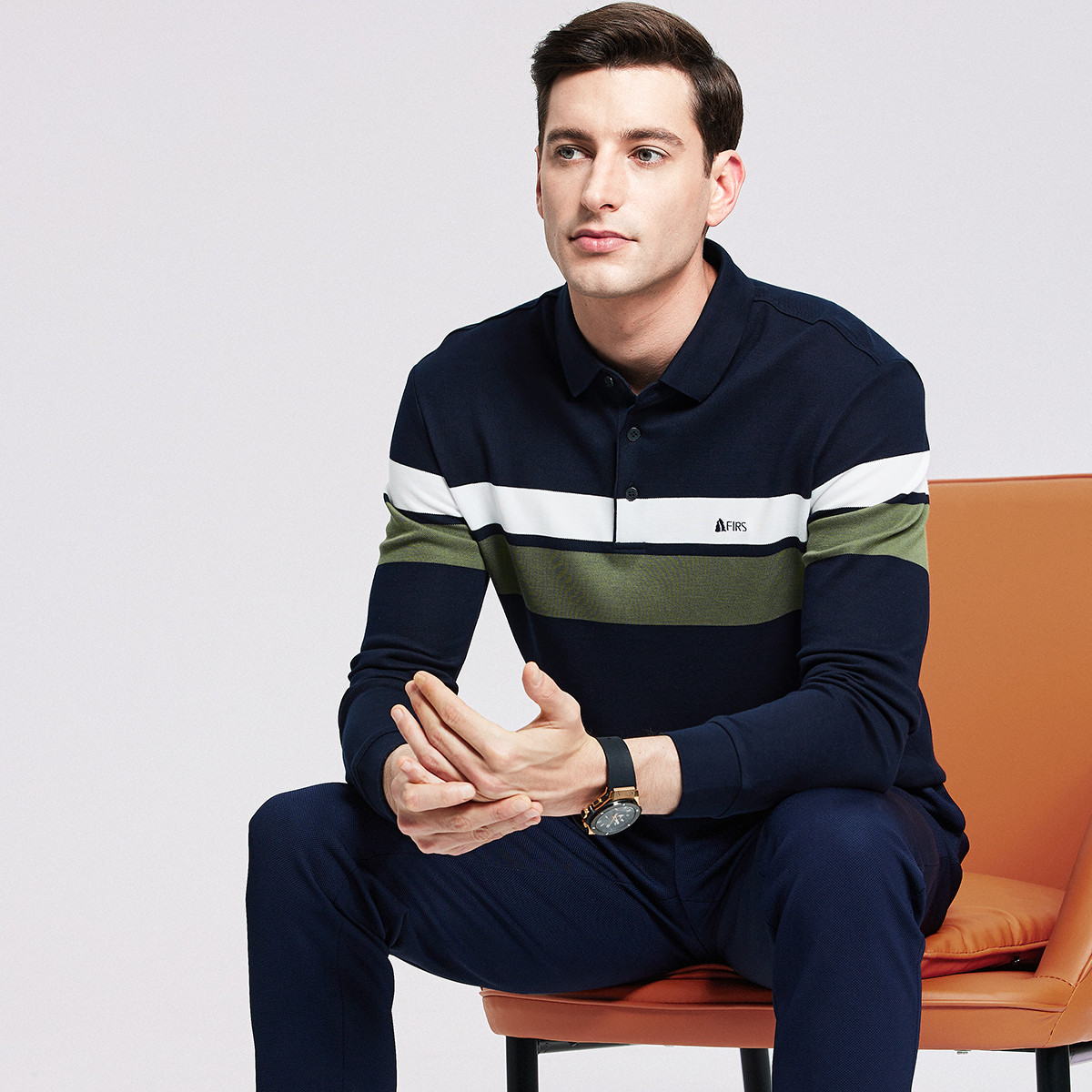【Collision Stripes】 Lapel long-sleeved T-shirt men’s spring and autumn heavyweight business casual youth POLO shirt